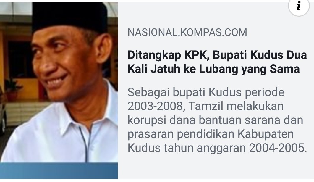 Tapi apa yang terjadi? di Kudus Bupati yang pernah dulu menjabat juga sebagai Bupati ternyata OTT, dan lebih gilanya lagi mantan Napi Korupsi pada periode pertamanya.